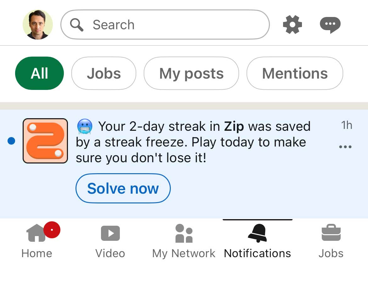So, what I want to know is: who in product thought it was a good idea to offset all these productivity vibes with games?! I know you’ve seen the Puzzles fed to you on the home screen and in your notifications (more on that in a minute), I just don’t get at all how this is anywhere near on-brand for a company that encourages likes for users flexing their KPIs. I’m almost certain that if your boss caught you playing these puzzle games on the clock you’d get reprimanded right quick.